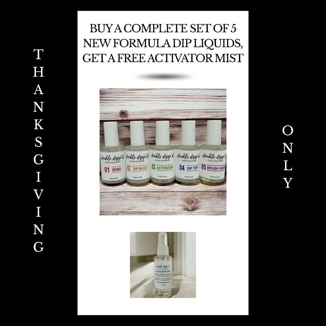 Get a complete set of 5 new formula dip liquids, get a FREE Activator Mist!