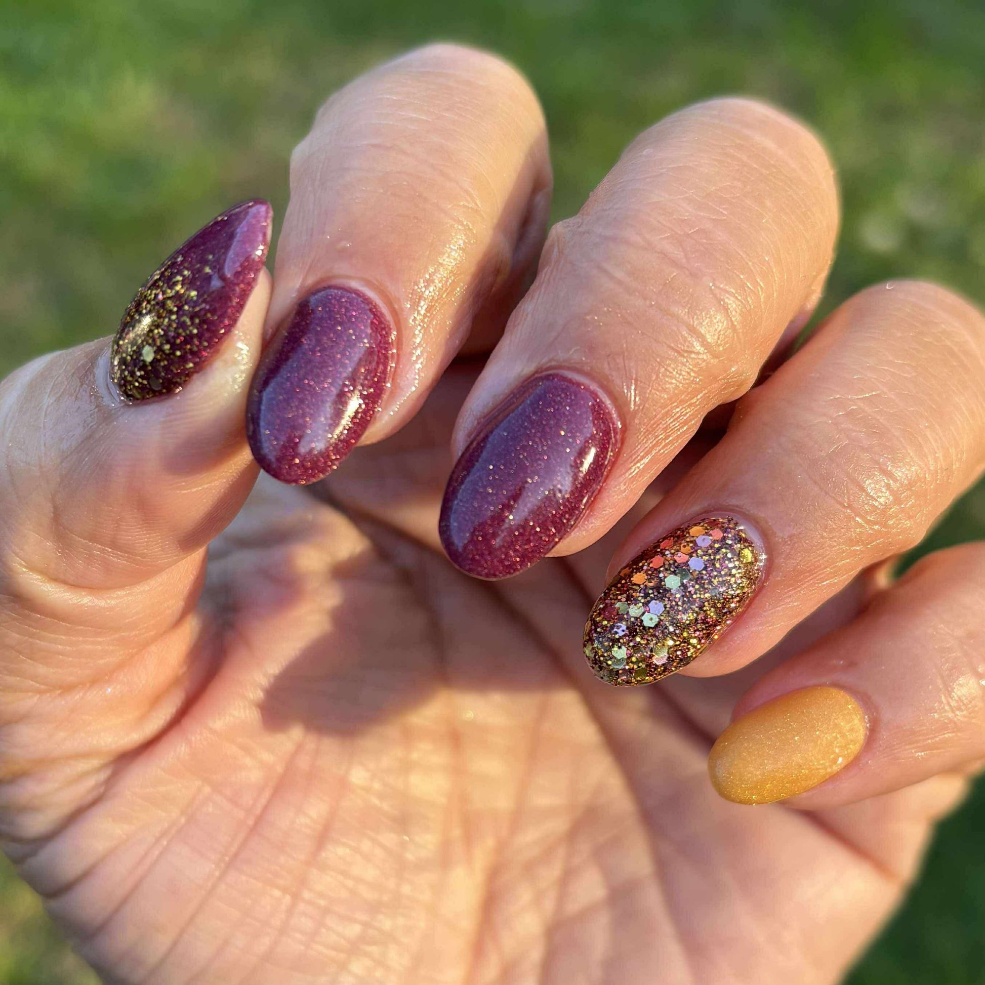 Christmas Tidings is a full-glitter dip powder from our 2025 Cranberries Holiday Bundle, featuring a sophisticated blend of gold holographic, warm gold, rose-toned and cranberry glitters suspended in a clear base. The multi-dimensional sparkle creates captivating light play and visual depth, while harmonizing seamlessly with the bundle's complementary shades for coordinated holiday nail artistry.