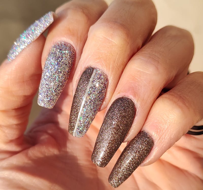 - When using dip powders with Foils, flakes and/or chunky glitters, pat down the layer with your finger or a piece of plastic wrap to make the layers flat.
