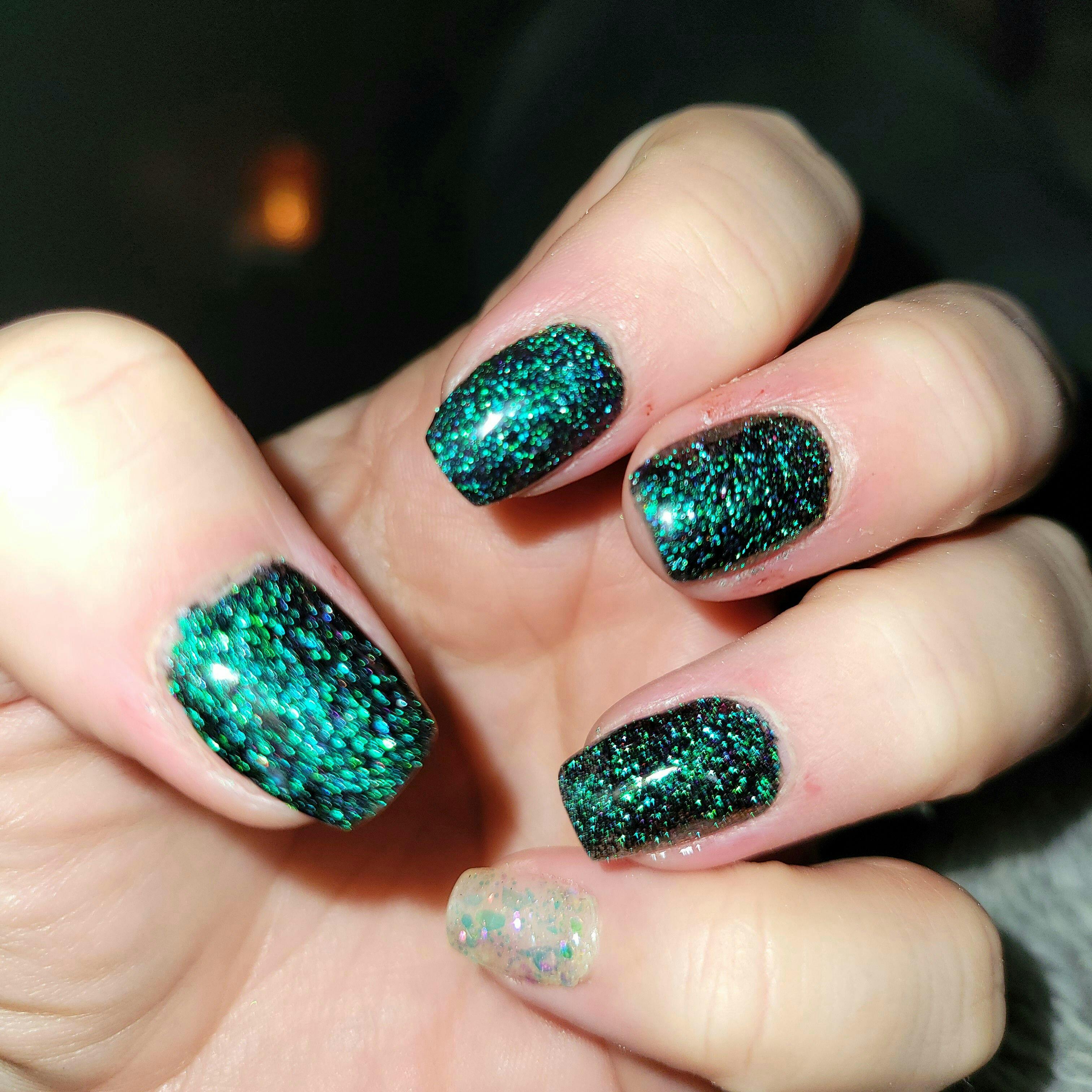 Wow! Just WOW! Abracadabra is a Chameleon Flake powder that will amaze you, just like magic! This light and fluffy multicolor powder has a color shift from green to teal/blue to purple to burgundy! The shade will show different colors in bright light versus dim lighting and by moving your hand around, the color will also shift! Priced higher than most powders.