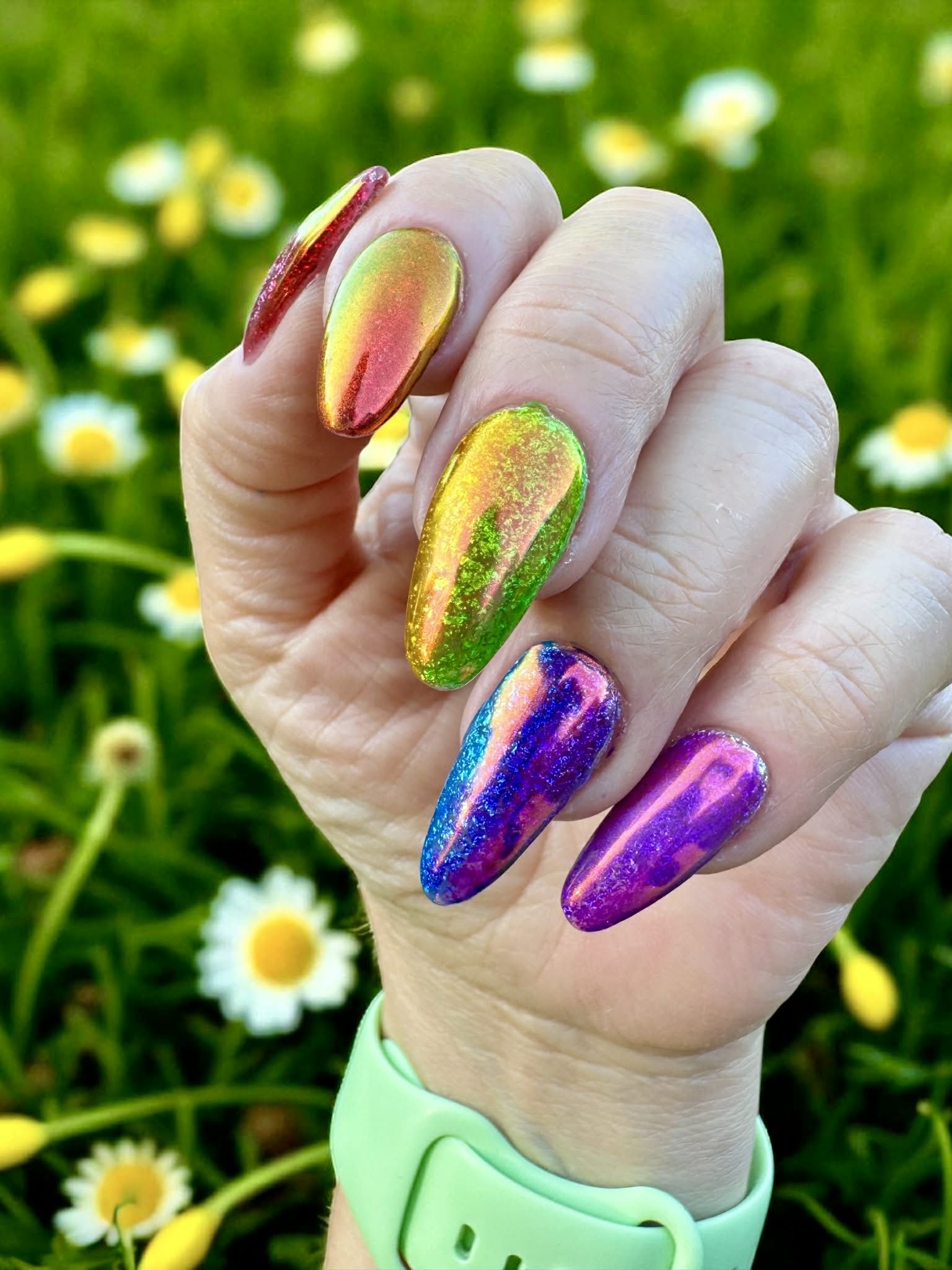 Galaxy Eyes is back for a limited time. This gorgeous dark shimmer blue/purple powder is actually a magnetic cat’s eye powder. Chrome it for another great look!
