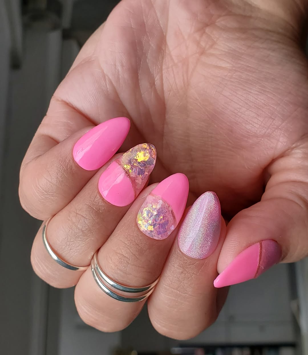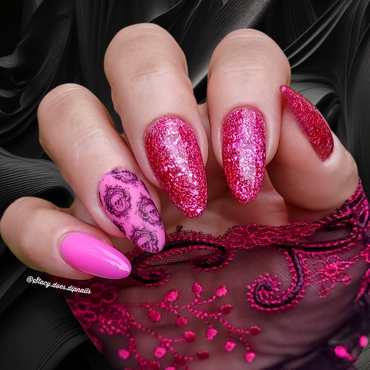 - When using dip powders with Foils, flakes and/or chunky glitters, pat down the layer with your finger or a piece of plastic wrap to make the layers flat.