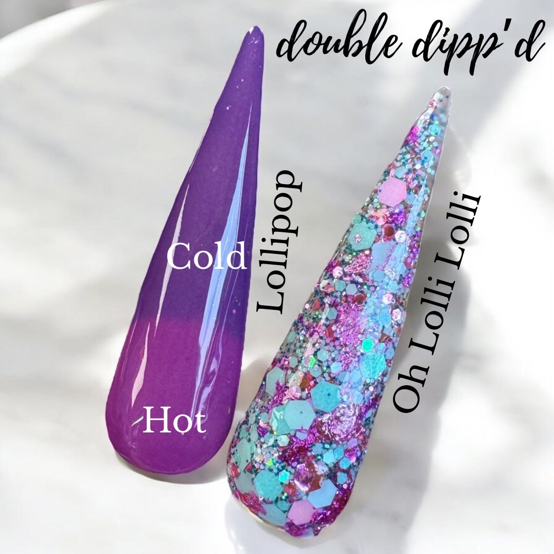 Lollipop is a rich, solid Pinkish Purple shade when hot and a vibrant Deep Purple shade when cold. Its simplicity highlights a bold and striking color range for a variety of looks. Was made to pair with Oh Lolli Lolli.