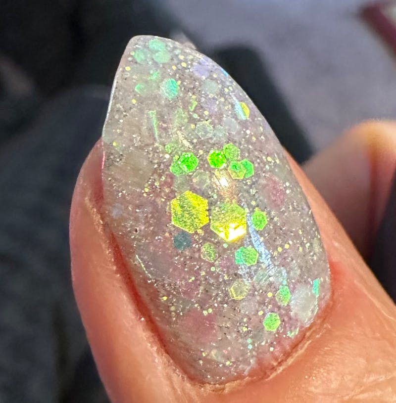 - When using dip powders with Foils, flakes and/or chunky glitters, pat down the layer with your finger or a piece of plastic wrap to make the layers flat.