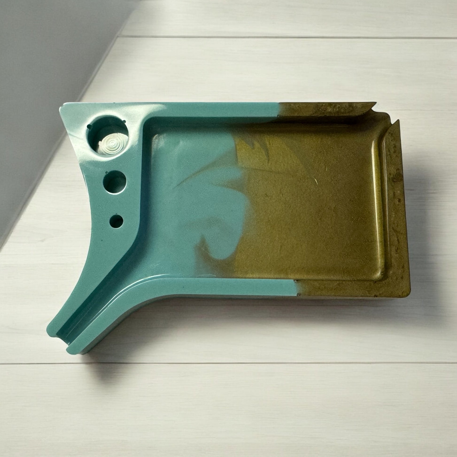 Our 3 style Liquid Bottle Holders are tilted slightly so that you can keep it in the holder when using your liquids. These will have a matte/satin finish and even those made with glitters are unique! Often times I make matching dip trays. If you are interested in a matched set, contact me!
