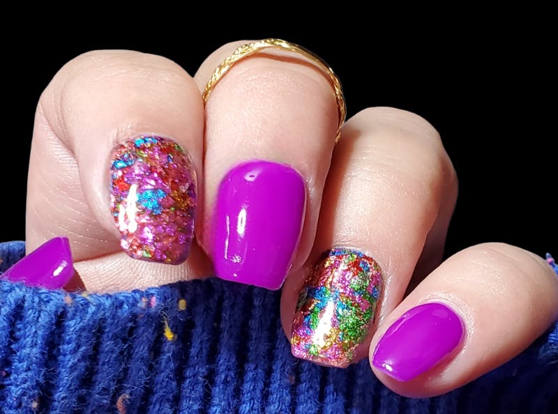 - When using dip powders with Foils, flakes and/or chunky glitters, pat down the layer with your finger or a piece of plastic wrap to make the layers flat.