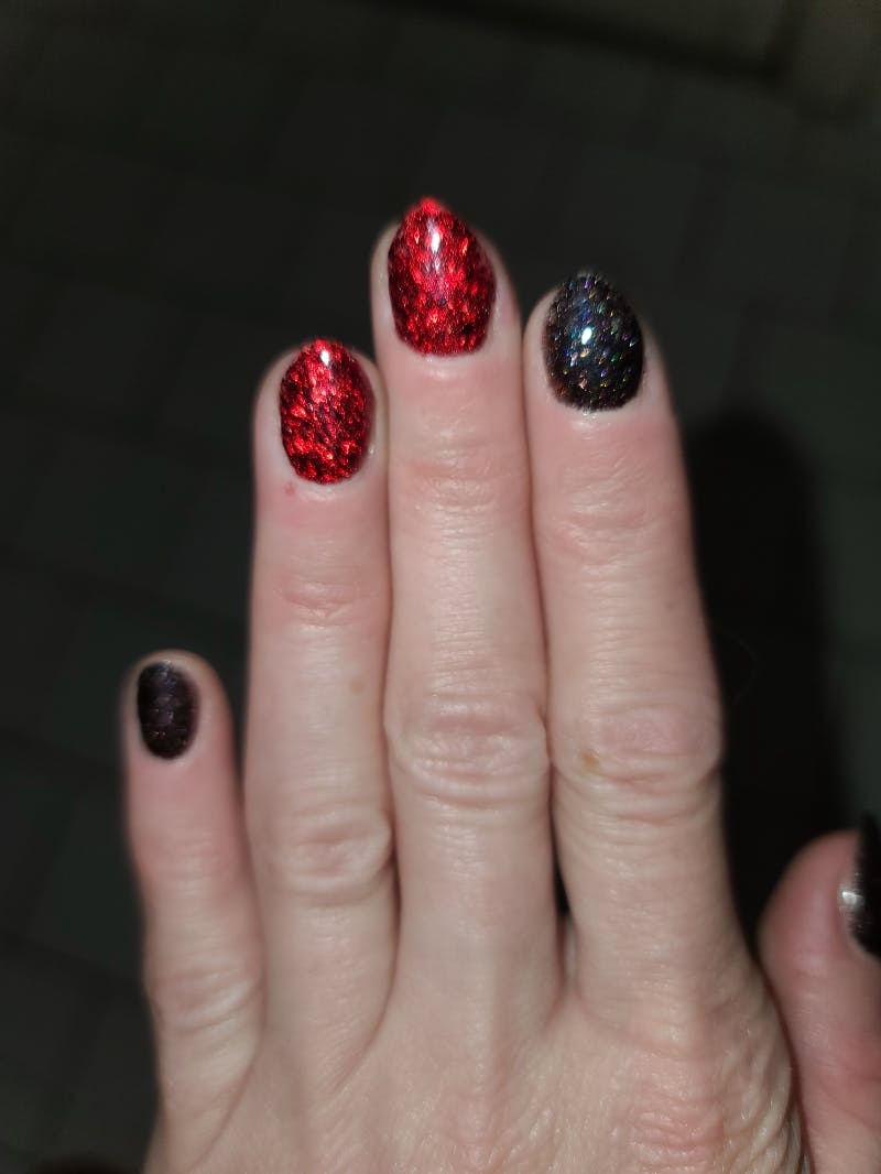 One of the "Storm" Collection colors, Tornado is red and an all foil powder.